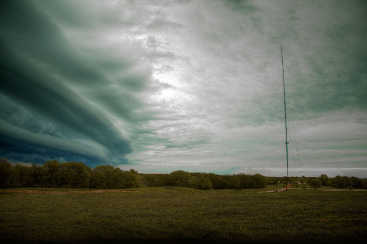 A widespread, long-lived, straight-line wind storm that is associated with a land-based, fast-moving group of severe thunderstorms.